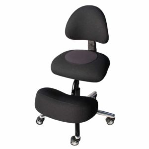 – une posture « assis genoux » avec répartition de la masse du corps sur l’assise inclinée et le support-genoux libérant le bassin qui bascule vers l’avant.
