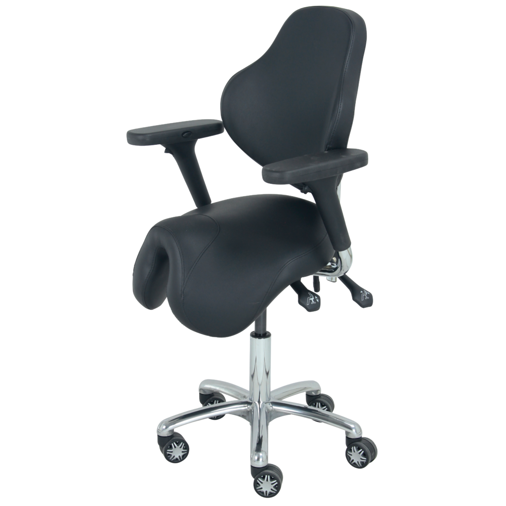 Assise et dossier équipés d’un mécanisme asynchrone avec 3 manettes permettant le réglage indépendant de l’angle de l’assise +5°/-6° et de l’angle du dossier +10°/-18° EN-1335 avec blocage en toute position suivant l’utilisateur, permettant une posture assis debout confortable et ergonomique.