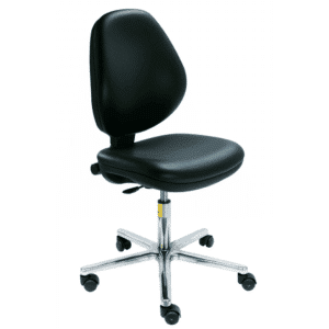 Assise interne L 480 x P 460 mm et dossier interne L 440 x H 480 mm polypropylène renforcé, garnissage mousse haute densité sans CFC. Procédé longévité KHOL de double encollage du garnissage et du revêtement antistatique conducteur, expansé polyuréthane noir (AE) ou tissu carboné dissipateur bordeaux non feu M1 (AT) connectés à tous les inserts métalliques du siège jusqu’à la terre. Le siège dérive ainsi les charges électroniques à la terre (capacité d’écoulement : ≤ 106 Ω).