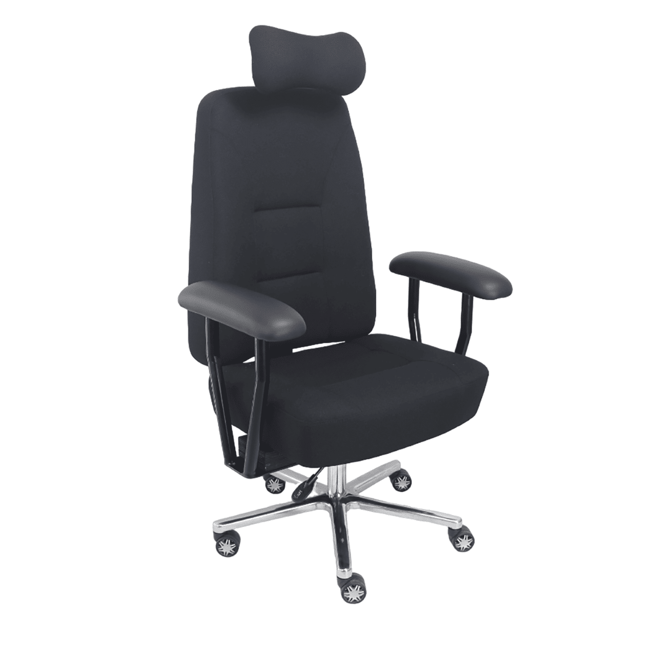 Réglage de la hauteur d’assise par vérin chromé pneumatique à gaz avec amortisseur d’assise, pour personne de forte corpulence, norme classe IV – DIN 4551.