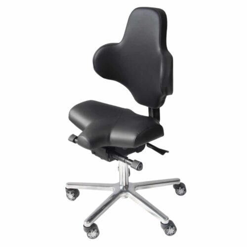 Assise anatomique coccyx libre et dégagement latéral L 520 x P 440 mm équipée d’une translation d’assise avec course de 65 mm en 6 positions et d’un mécanisme asynchrone avec contact permanent du dossier à tension réglable.