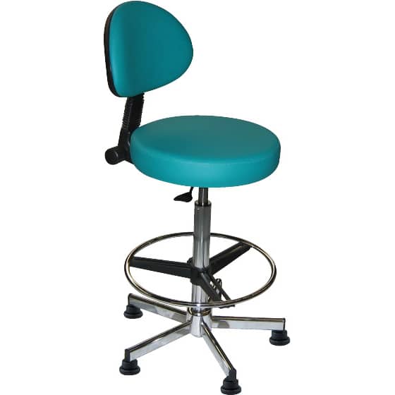 Réglage de la hauteur d’assise par vérin chromé pneumatique à gaz avec amortisseur d’assise, norme classe IV – DIN 4551.