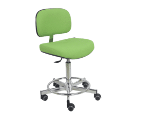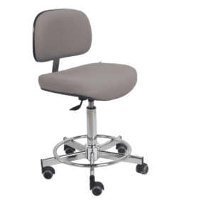 Sur siège H1 et H2 piètement de sécurité 5 branches Ø 540 mm acier chromé avec repose-pieds soudé Ø 410 mm équipé de roulettes à bande de roulement souple pour sol dur ou de patins antiglisse conformes aux normes européennes en vigueur.