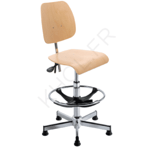 Réglage de la hauteur d’assise par vérin chromé pneumatique à gaz avec amortisseur d’assise, norme classe IV-DIN 4551.