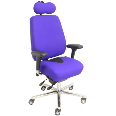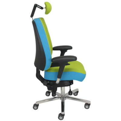 Mécanisme asynchrone avec contact permanent du dossier à tension réglable CP + T. Assise réglable en négatif et positif de – 4° à + 5° blocable en position ou libre.