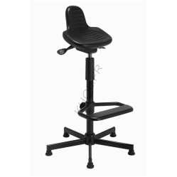Assise avec dosseret L 345 x P 250 x H 190 mm mousse polyuréthane structurée souple, résistante et pivotante à 360° avec mécanisme inclinable + 3°/-11 EN-1335, permettant une position ergonomique, très proche de la position debout. Matériau robuste, inusable, résistant aux étincelles et à la plupart des acides et bases.