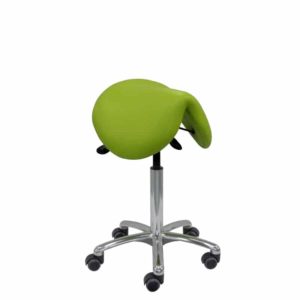 Assise en forme de selle de cheval L 330 x P 410 mm structure acier mécano soudée/ bois multiplis, assise suspendue par ressorts linéaires et garnie de mousse haute densité sans CFC et dossier galbé L 380 x H 360 mm garnis de mousse haute densité sans CFC.