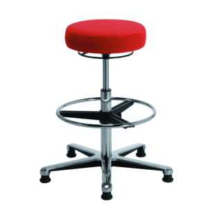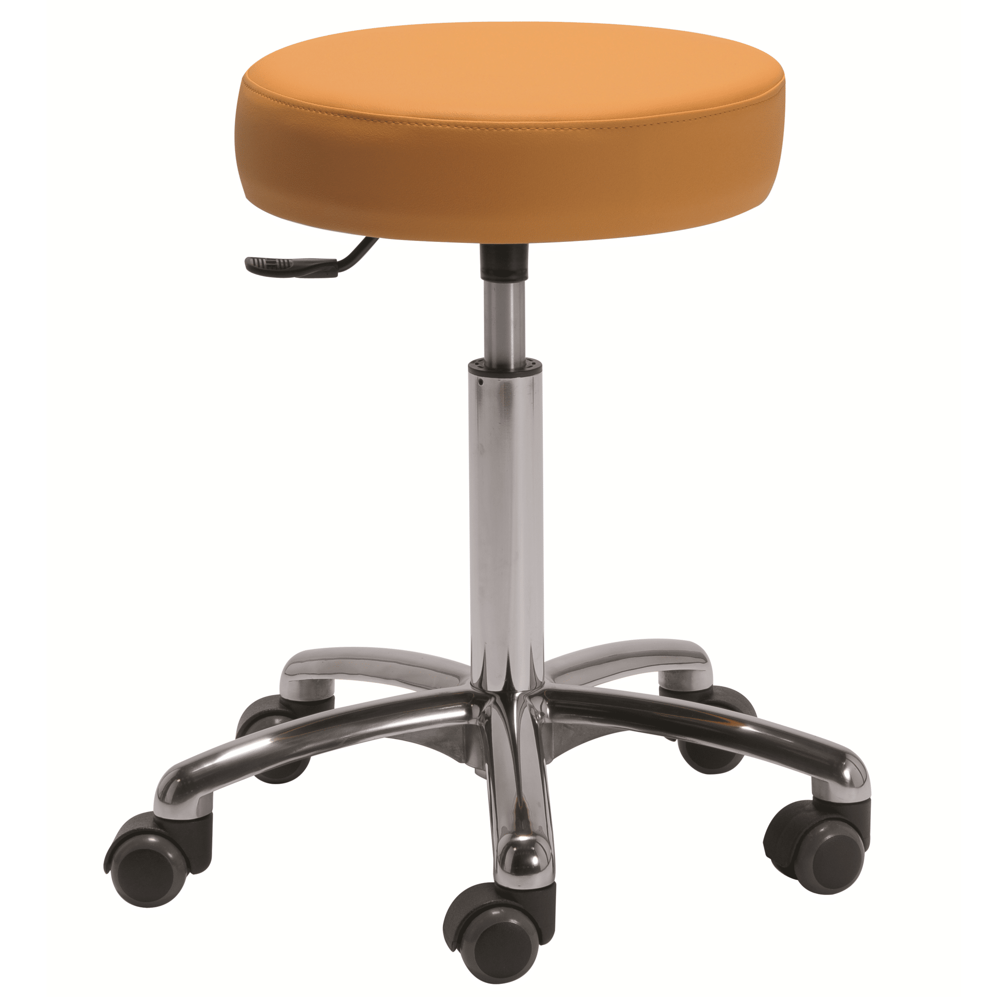Réglage de la hauteur d’assise par vérin chromé pneumatique à gaz avec amortisseur d’assise, norme classe IV-DIN 4551.
