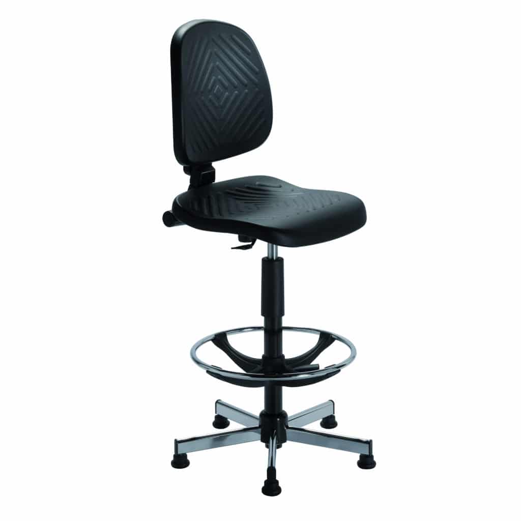 Assise anatomique L 440 x P 440 mm et dossier L 400 x H 375 mm, mousse de polyuréthane noir structurée souple et résistante, matériau robuste et inusable résistant aux étincelles et à la plupart des acides et bases EN-1335.
