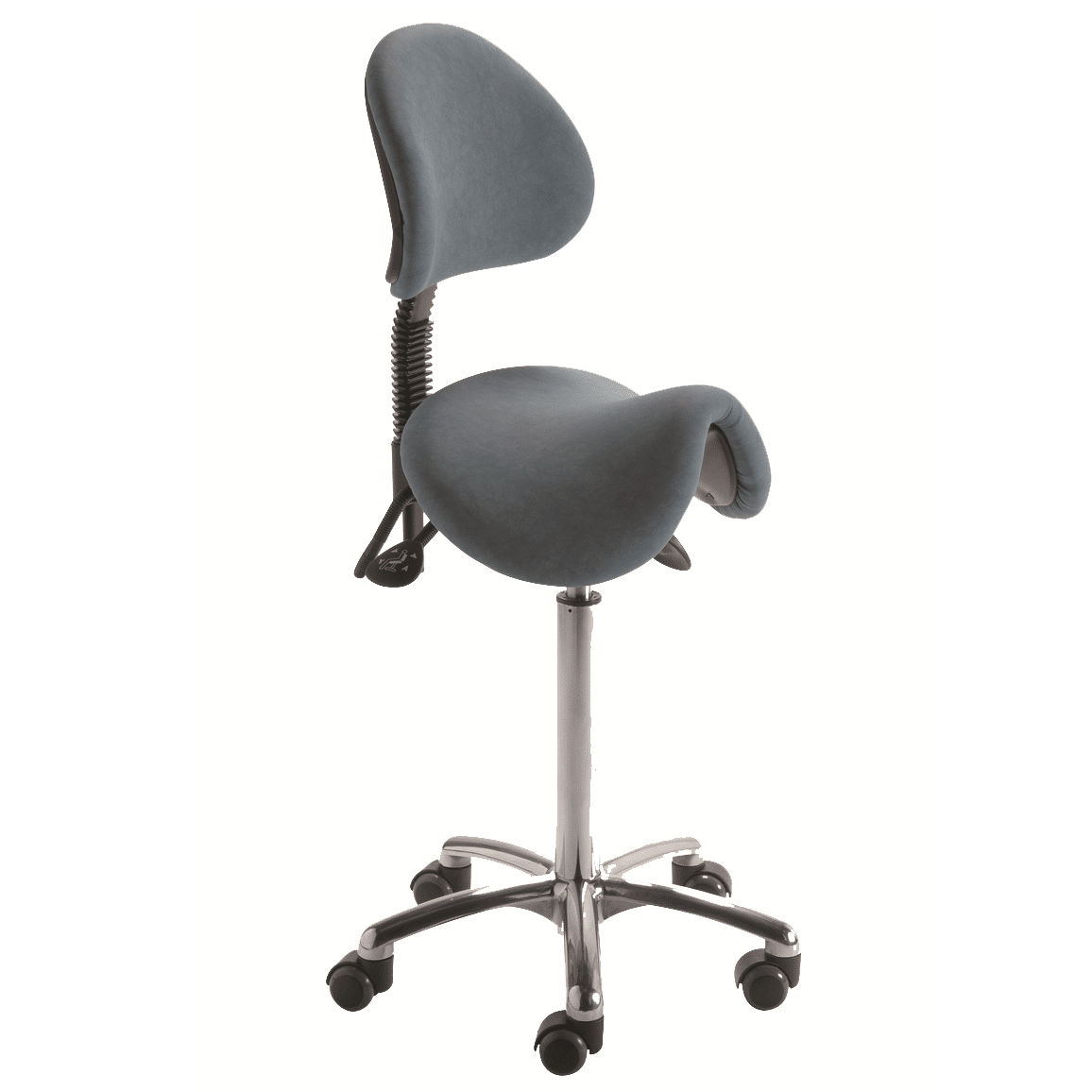 Assise et dossier équipés d’un mécanisme asynchrone permettant le réglage indépendant de l’angle de l’assise de (+5°/- 6°) et de l’angle du dossier (+10°/-18°) EN-1335 avec blocage en toute position selon l’utilisateur permettant deux postures : Assis et assis debout tout en offrant une position ergonomique idéale en permettant au bassin de prendre sa position naturelle favorisant une courbure correcte du dos.